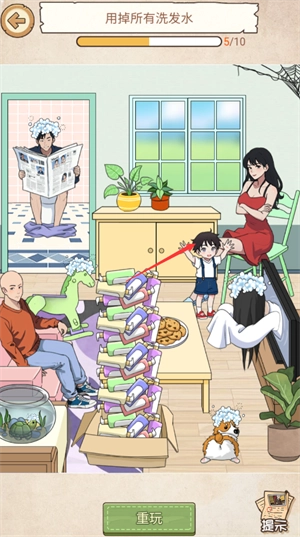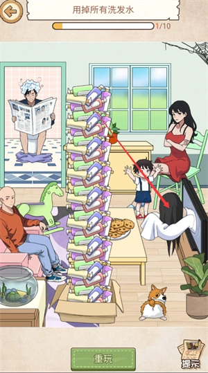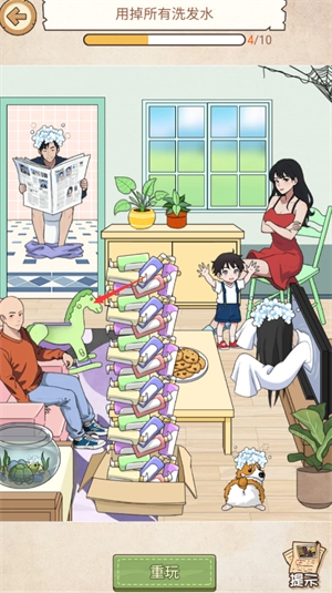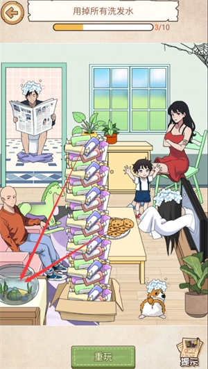 2、点击电视,再拖洗发水给电视里女子。