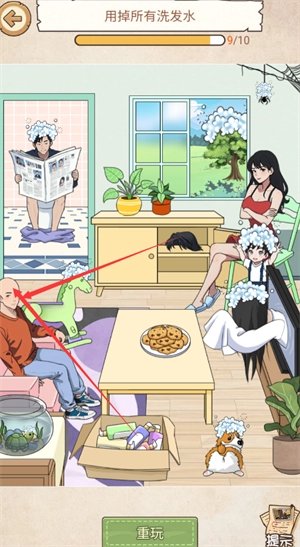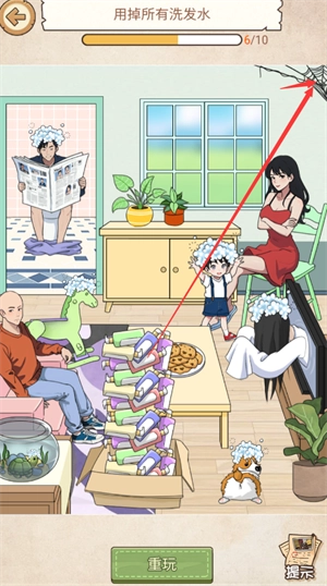7、点击蜘蛛网,再拖洗发水给蜘蛛。