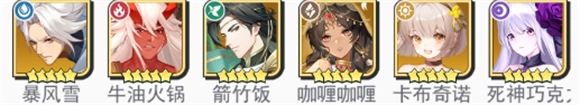 2、进阶阵容:暴风雪、牛油火锅、箭竹饭、咖喱咖喱、卡布奇诺、死神巧克力