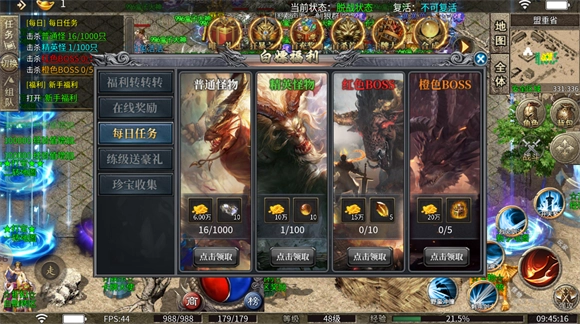 2、每日任务:游戏每天都会刷新每日任务,完成之后会给予大量奖励
