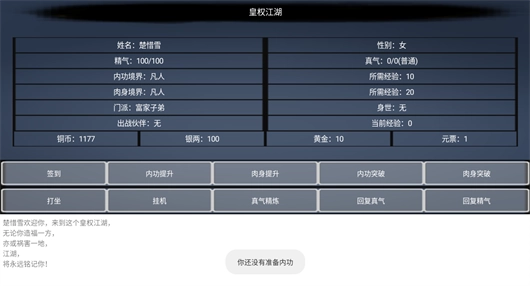 皇权江湖是一款以文字为核心的武侠角色扮演游戏,它构建了一个不存在固定命运的开放世界,玩家能够自由抉择属于自己的前行之路。