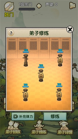 2、然后选择弟子修炼,可以让弟子快速修炼。