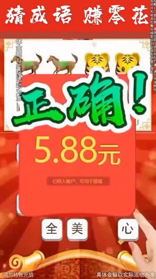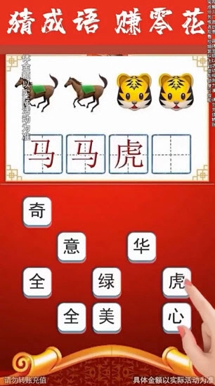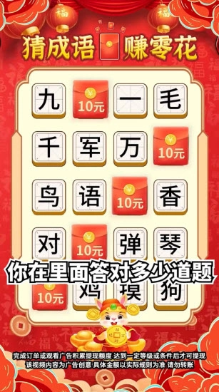 这是一款题材较为常见的成语答题游戏,关卡数量不少,难度会随着游戏进程逐步提升。操作方式十分简单,只需点击即可完成,而且游戏提供的奖励也相当丰厚。