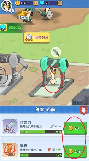 2、大鹅来到装备区,花费金币升级