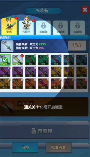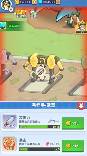 4、解锁弓箭手后,能提升攻击力与暴击率,击败BOSS会变得轻松许多