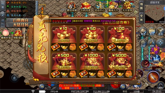 2、自动系统:游戏上线就会赠送自动挂机、自动回收、自动拾取功能,助你轻松畅玩游戏,无需时刻紧盯屏幕。借助这些系统,即便你不在线,角色也能不断成长。