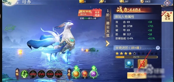 4、升星成功,坐骑的生命力,战力等都成功提升。