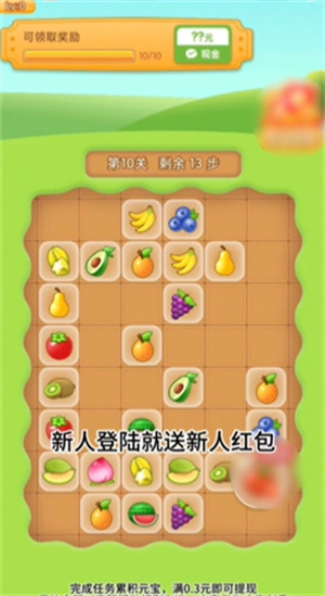 是真的,新用户登录就能领到专属红包,金额是0.2元,另外通过消除图案闯关也能获得不少红包,只要凑够0.3元就能提现了。下面是小编的实际测试情况: