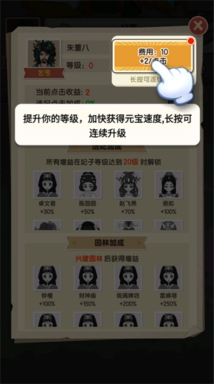 1、通过点击屏幕,玩家可以不断的获得元宝