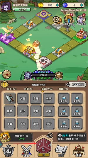1、点击骰子掷出点数,角色移动到对应格子后,有机会获得装备掉落