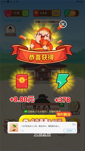 3、便捷提现:游戏内的红包奖励可进行累积,一旦金额满0.3元,玩家就能便捷完成提现操作。这种低门槛的提现机制,能让玩家更轻松地获取实实在在的收益。