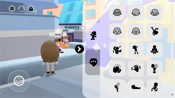 进入小镇后会出现新的界面,左上方的衣架图标可用于更换角色外观,手提包图标则能用来选购服装。
