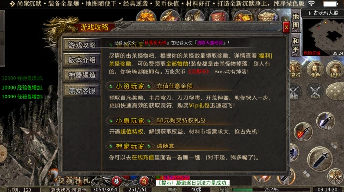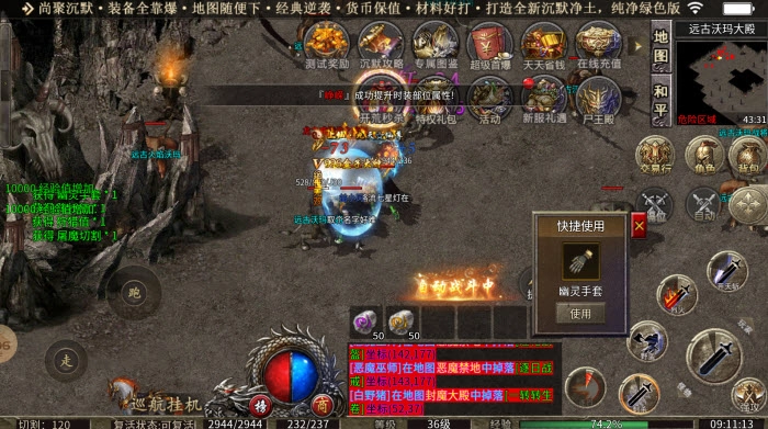 尽情击杀怪物,根据你的杀怪数量领取奖励。详情可查看【福利】中的杀怪奖励,还能免费领取全部赞助!装备全靠击杀怪物掉落,别人有的,你也都能拥有。万能货币《沉默币》所有Boss都会掉落!