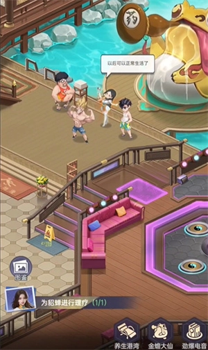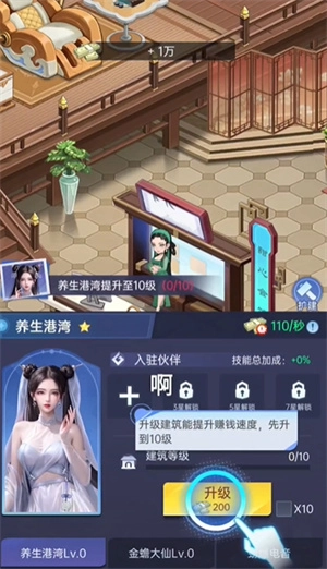 2、直接点击右下角的养生港湾,然后升级一下角色。