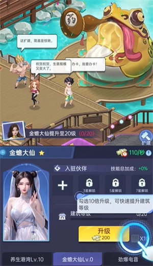 4、之后点击右下角的金蟾大仙,同样可以用来升级角色哦。