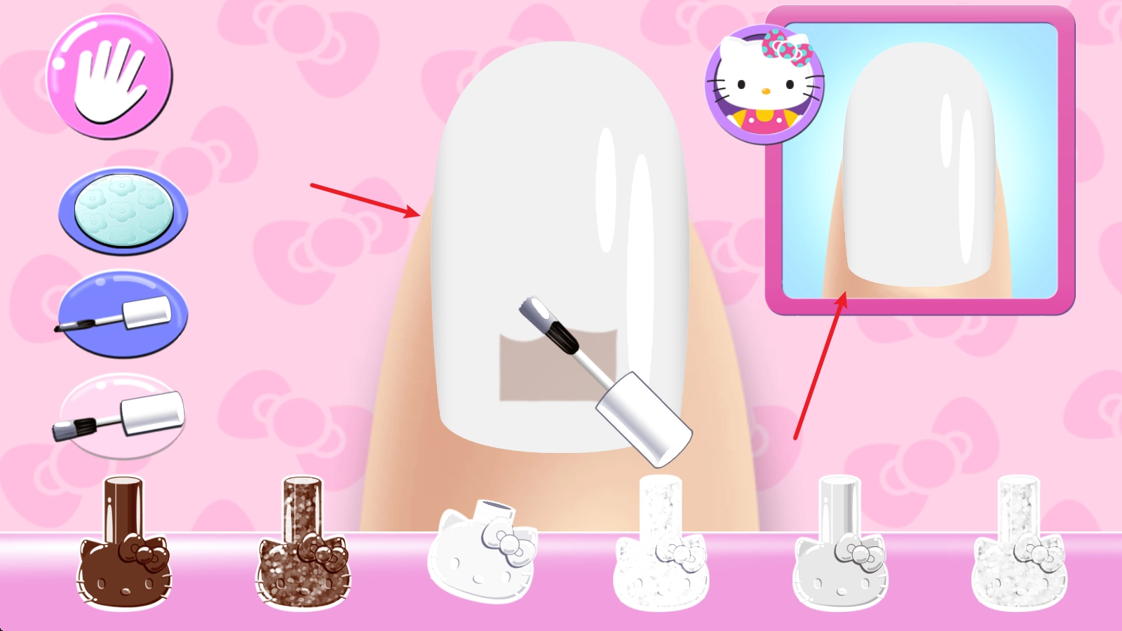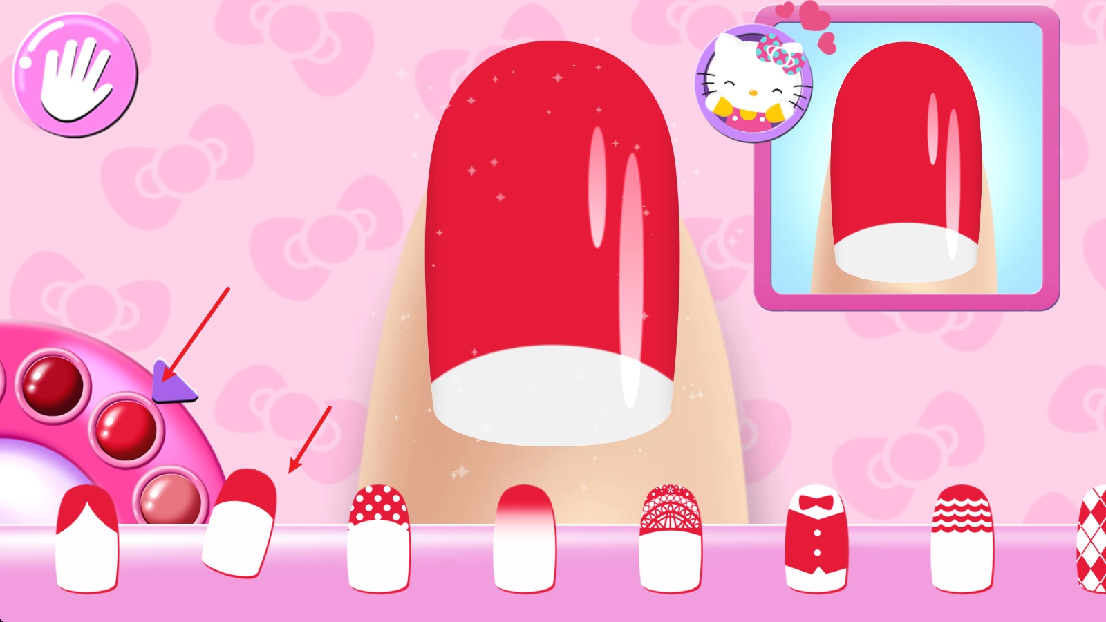 游戏里有各式各样可爱的贴纸,这些贴纸的原型均源自凯蒂猫系列里的角色,能让你尽情设计出各种别具一格的美甲。