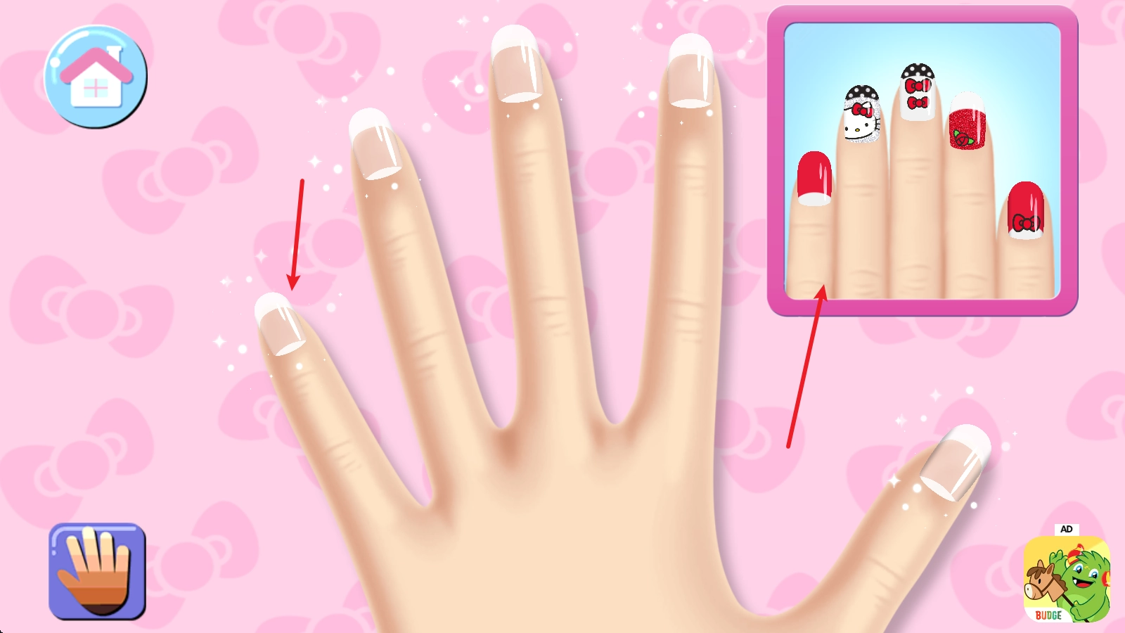 3、开始后,我们点击对应的指甲,再按照给出的样式进行设计。