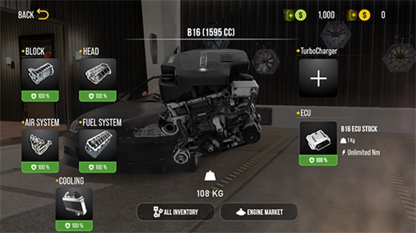 2、挑选车子的零部件,可自由进行替换操作,像发动机、引擎之类的部件都能如此。
