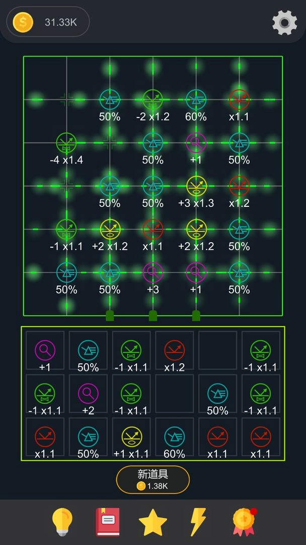 道具的购置与合成:消耗金币来获取全新的光学道具,并且把同类型的道具进行合成操作,从而得到更高级别的道具。