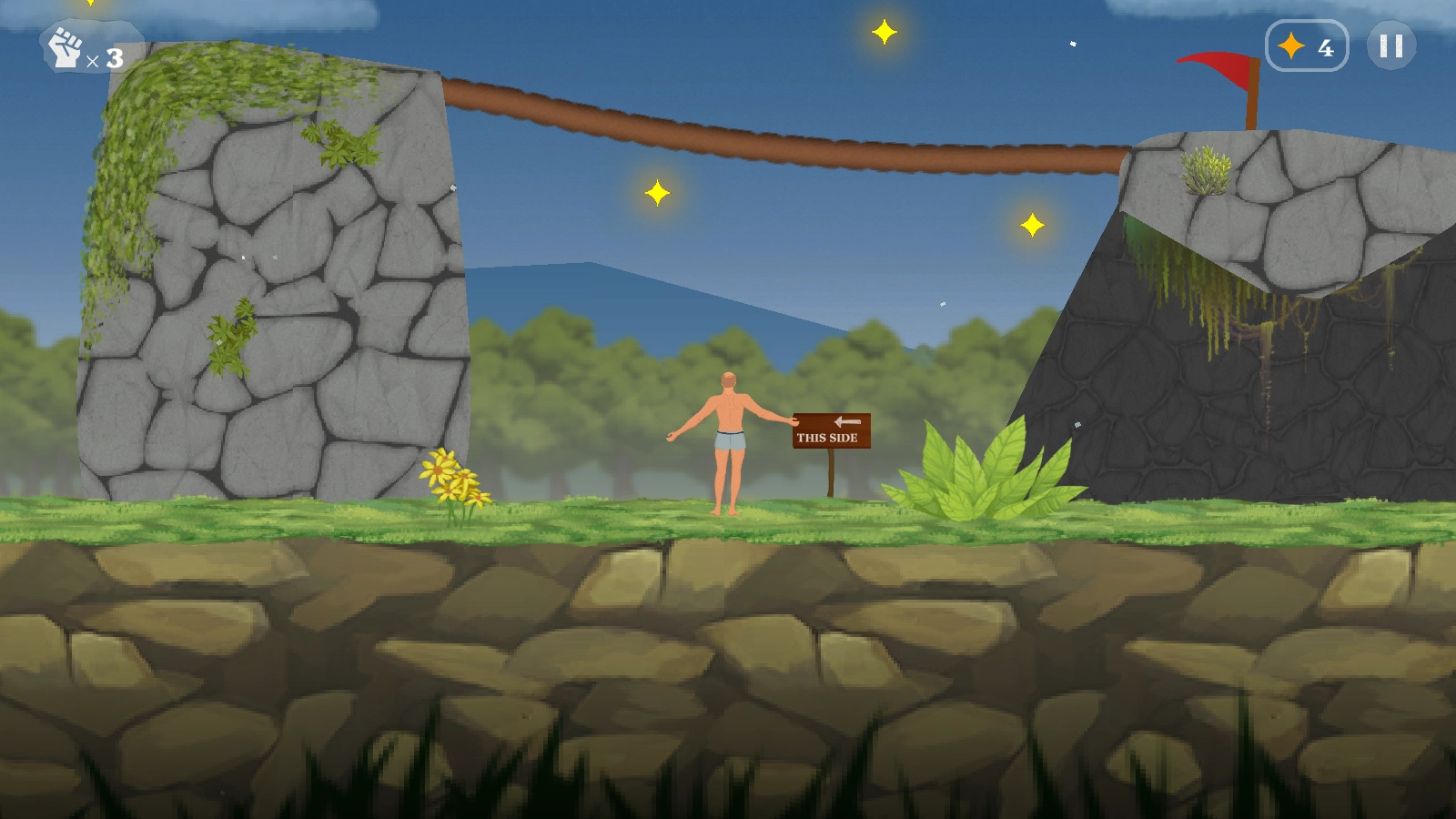 3、每一个关卡都有着不一样的构造设计,玩家得精准操控角色开展攀岩行动,只有顺利登顶方可通过此关。