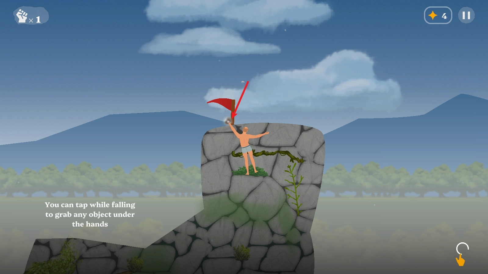 3、松开手指后,人物会在当前停止的位置用手抓住墙壁。