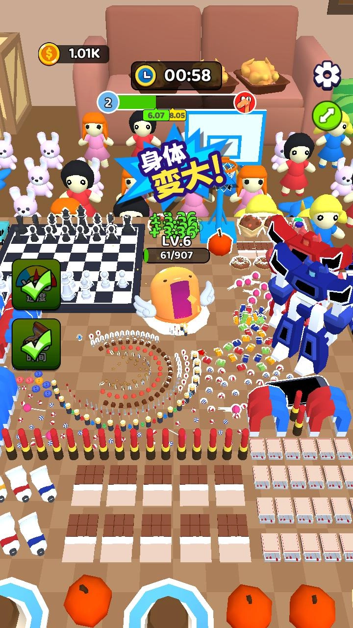 只需轻轻滑动屏幕就能控制黑洞的移动,使其吞噬行进路径上的所有物品。