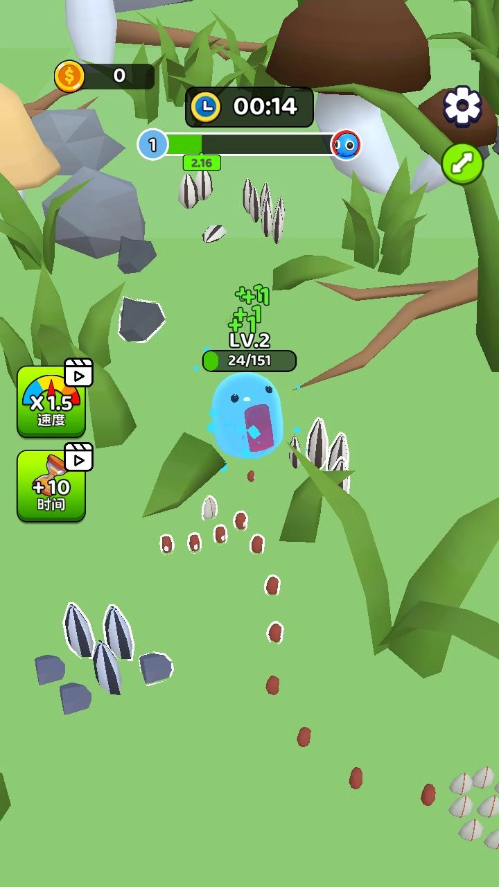 2.一开始,我们需要找寻资源,来壮大自己的体型。