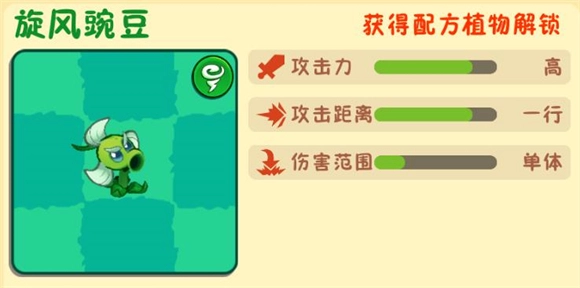 1、旋风豌豆:由豌豆射手与三叶草合成可得,其发射的子弹具备击退效果。
