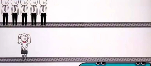1、不管选择撞上面的人还是下面的人都是失败结局。