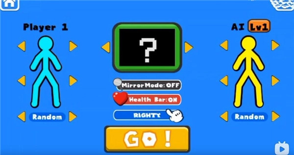 1、首先大家进入至尊决斗者火柴人游戏,打开游戏后能看到人机模式和1v1模式,还可以和好友开展1v1的PK赛。