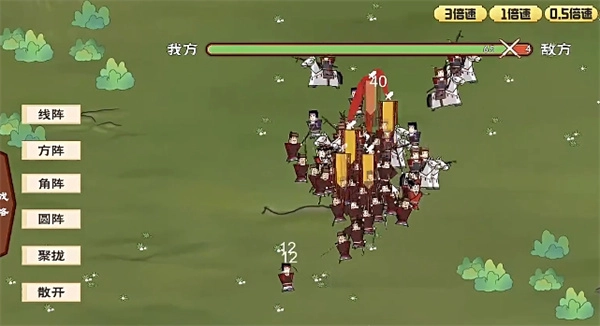 2、这款游戏的核心玩法依旧以推关为核心。玩家能够自行招募门客、挑选初始军队,并在一场场战斗中不断提升自身实力。