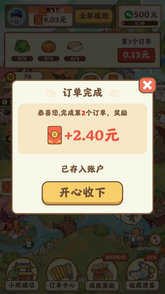 2、在游戏里,只要完成订单就能持续获取奖励,完成的订单数量越多,能拿到的奖励也会越丰厚。