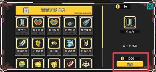 6、在天赋界面中你还可以使用金币购买各种天赋技能