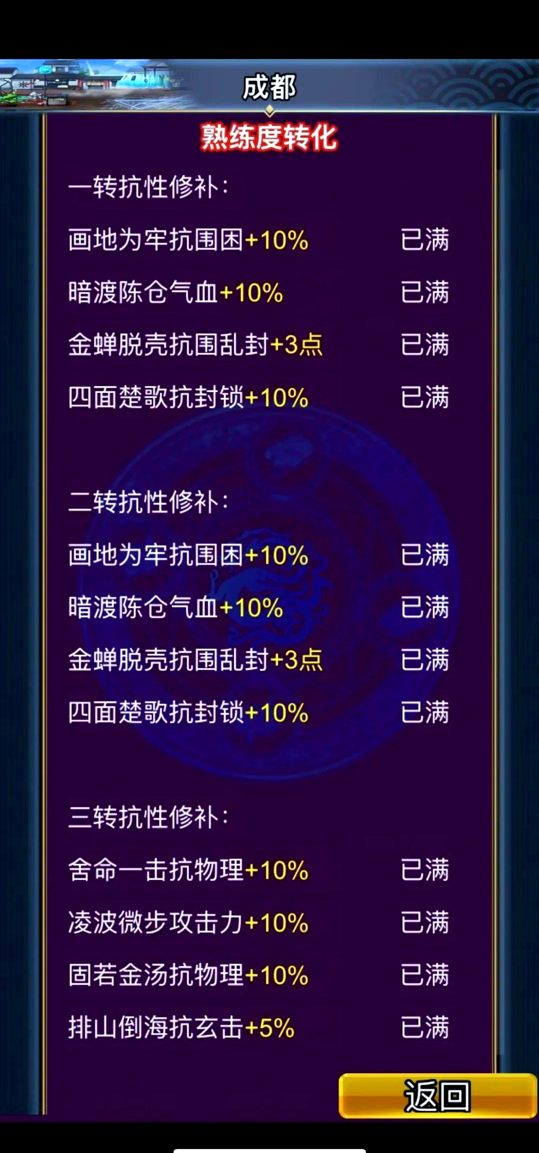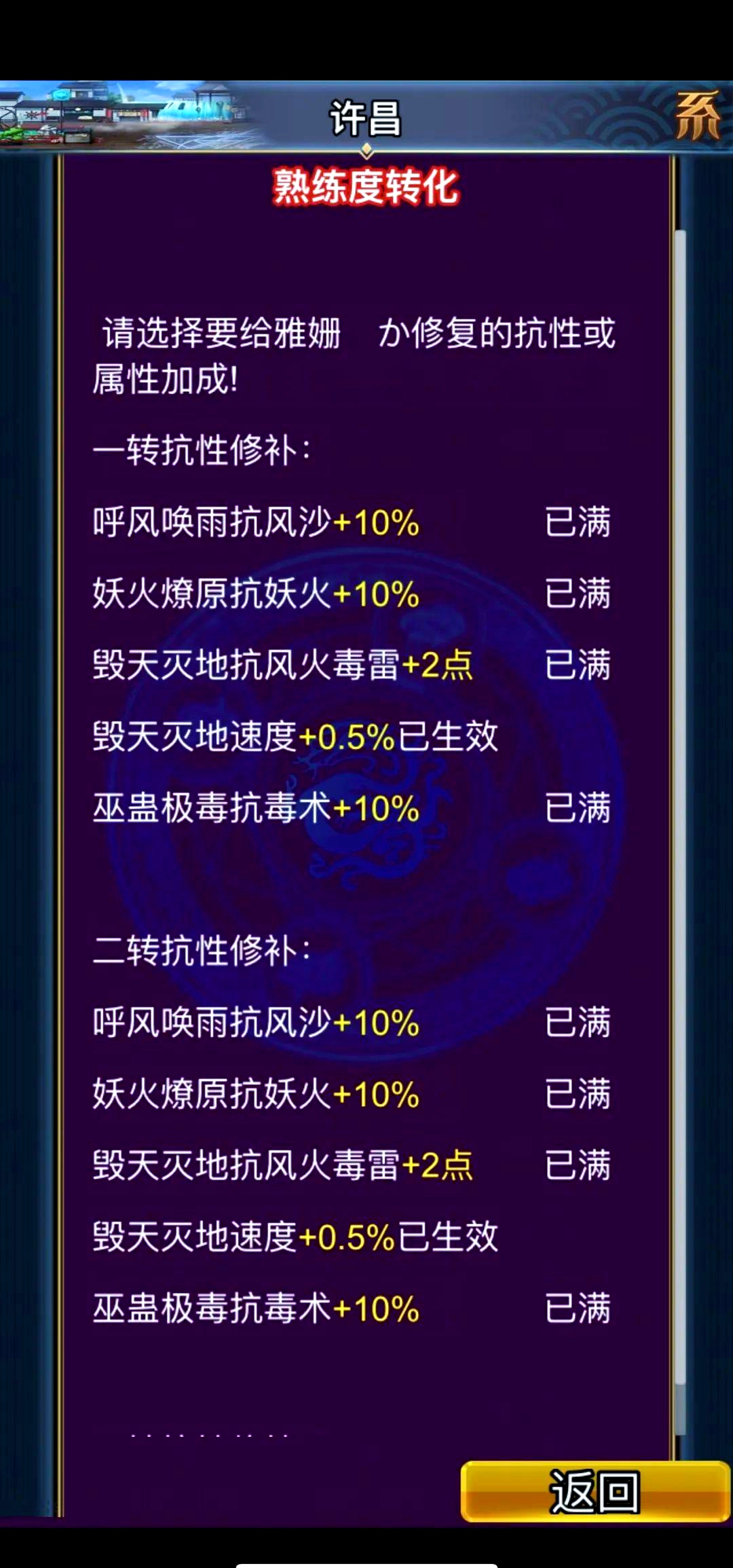 从一转过渡到二转时,只需要让一个技能达到化2满的状态即可;如果条件具备,将另一个技能调整为化0,还能进一步降低补抗方面的要求。