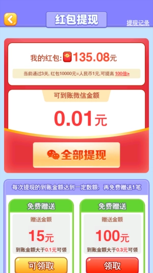 2、海量关卡待你挑战,每一关都藏有惊喜红包奖励,闯过的关卡越多,红包奖励就越丰厚!