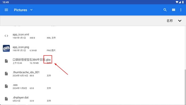 2、打开手机文件夹,找到需要放入的游戏文件(文件后缀为.gba)。
