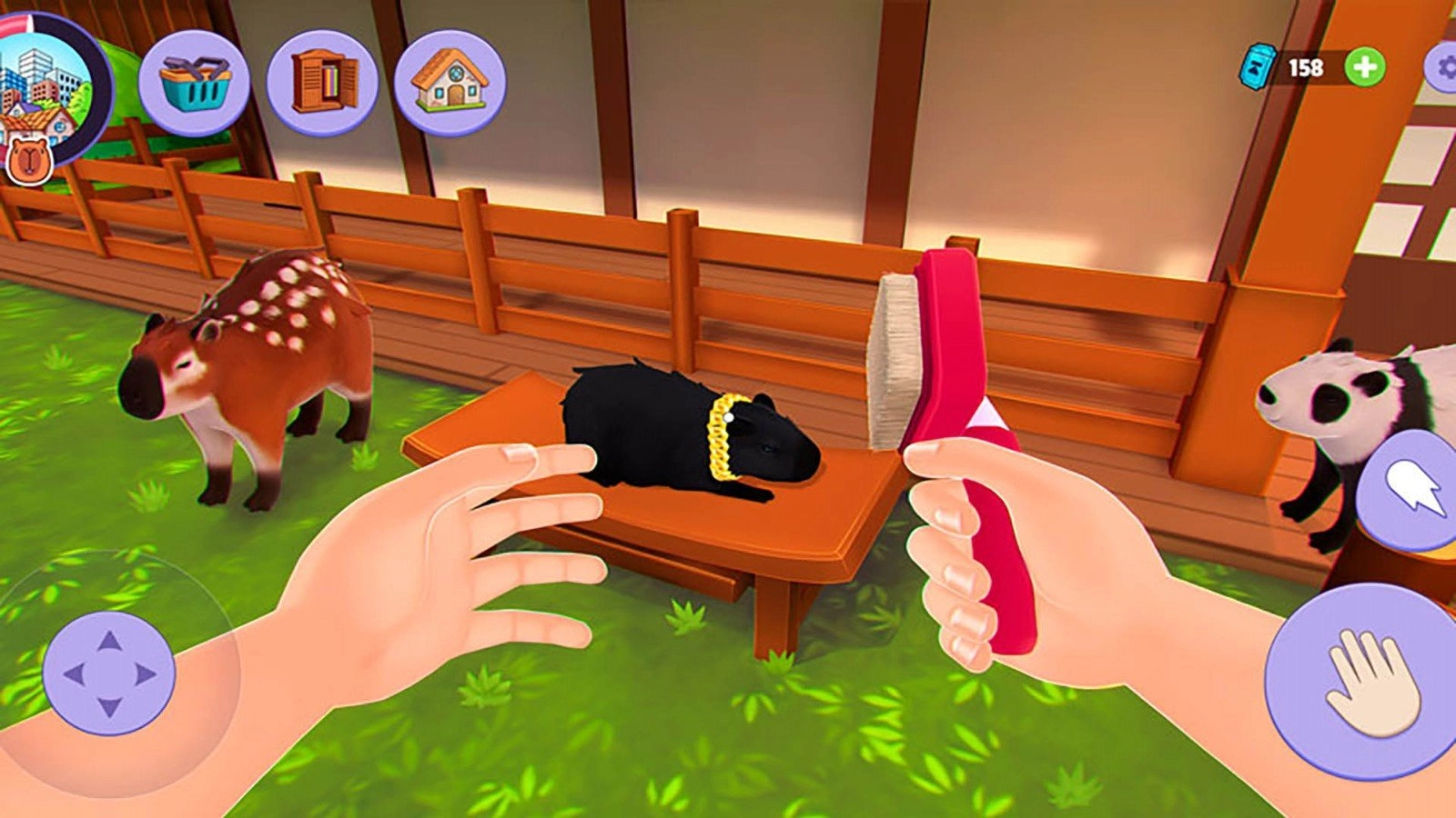 为卡皮巴拉打造理想的生活环境,准备各类食物供它享用,帮它清洗身体、修剪毛发,还可以带它外出游玩。