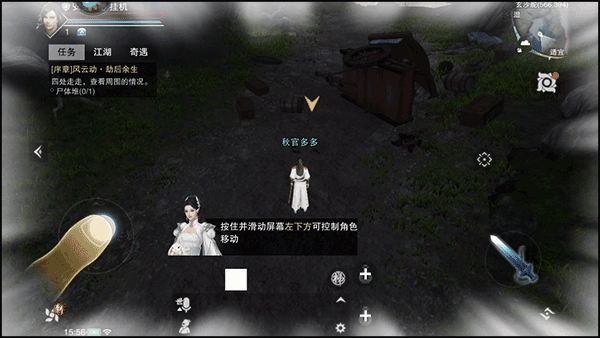 1、启动游戏后,在标题界面找到并点击“踏入江湖”这一选项;