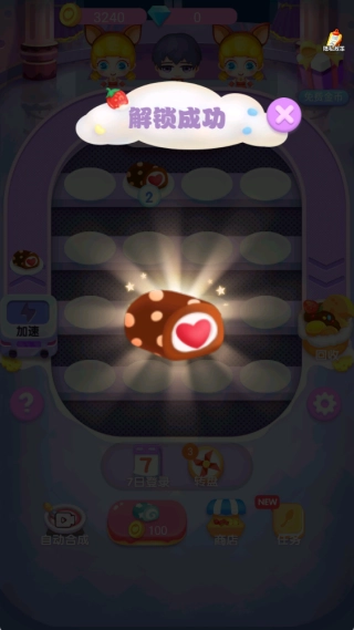 2、按照阶梯式合成规则来操作,从基础品类慢慢升级到精致高阶甜品,合成等级越高,能够解锁的玩法内容也就越丰富。