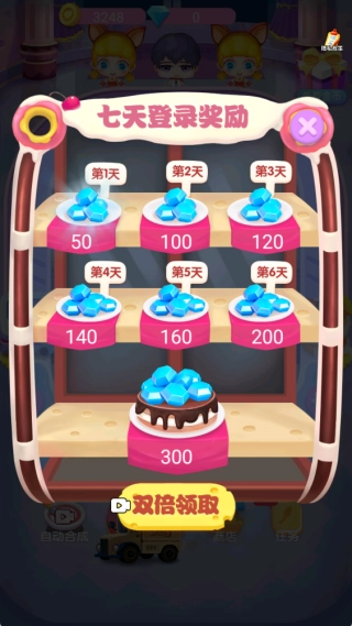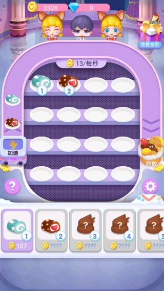 2、消耗金币能够制作新蛋糕,玩家需要迅速找出相同的蛋糕进行合成,从而快速达成新的关卡任务。