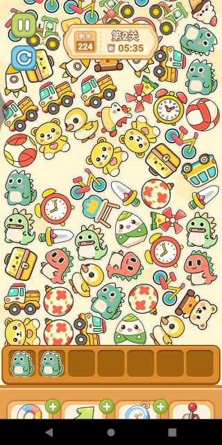 3.点击的图案会移动到画面下方的格子里,只要凑齐三个一样的图案就能闯关。