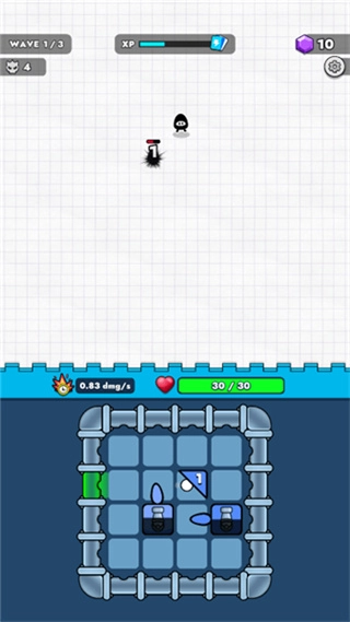 4、成功进入场景后,敌人会缓缓向你靠近。当白球触碰到炮台时,炮台会释放技能攻击敌人,但每次释放后都会有一段冷却时间。