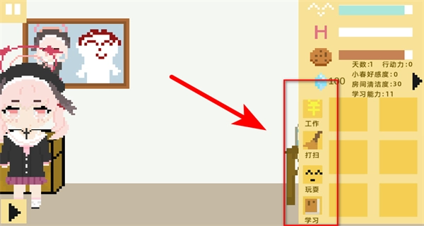每天拥有固定的行动力,它对应着四种行动选择。行动力消耗完之后,要通过睡眠进入第二天。所以需要精准地规划每天的行动,在创收、恢复心情和学习这几方面做好平衡,这样才能确保顺利通过三次考试,推动整个养成过程向前发展。