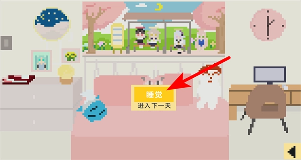 4、完成当天的行动后,需点击睡觉按钮,这是推进游戏天数的操作,点击后将进入次日的养成流程。