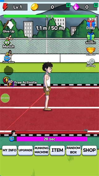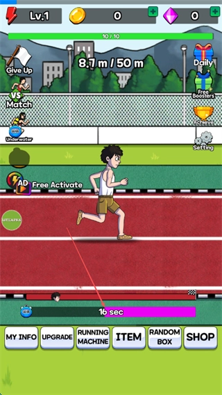 1、在赛道界面等待倒计时结束后,角色会自动进入赛跑状态,朝着50米的目标前进。
