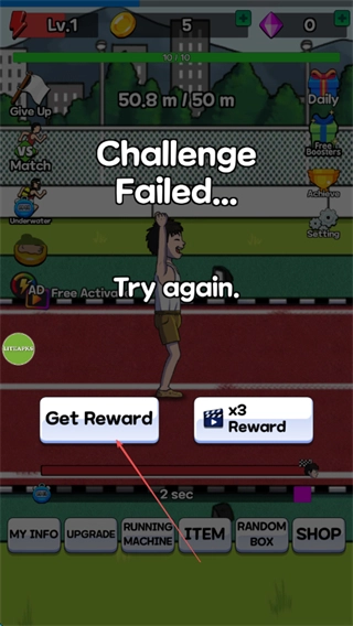 4、赛跑结束后界面显示“ChallengeFailed...”提示时,点击“GetReward”按钮即可领取相应奖励。