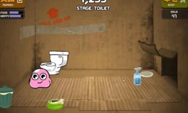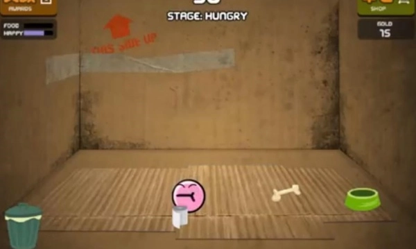 3、游戏里会出现一些金币和粑粑,及时清理掉粑粑能让它心情变好,还可以收集金币去商店购买食物。