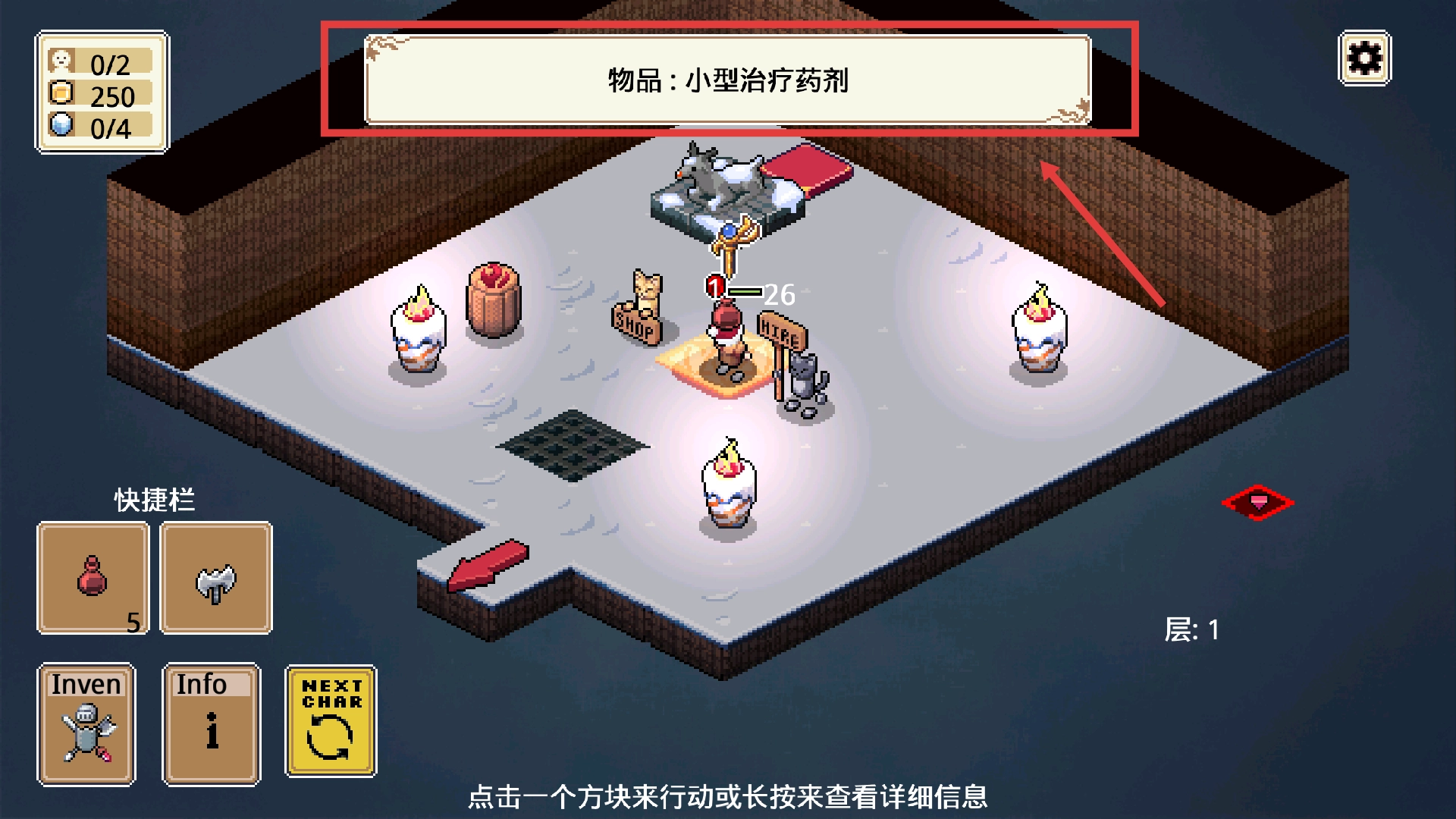 探索地牢时,建议优先收集【小型治疗药剂】,它能在战斗结束后快速为你恢复生命值,让你更有底气应对接下来遇到的更危险敌人。