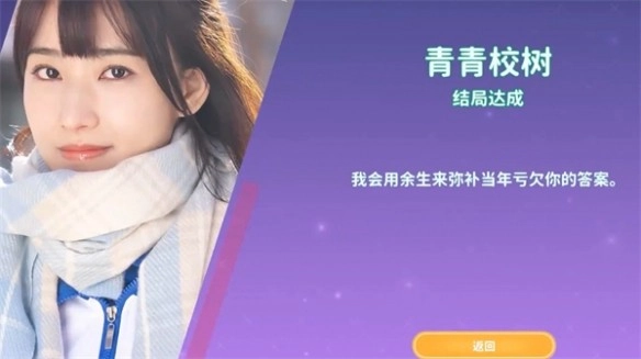 最终,主角与庄世颖在校园里重现了当年的那段情节,而这一次一切都很圆满——两人手牵手迎来了甜蜜的结局,还解锁了“青春校树”的成就。