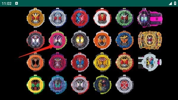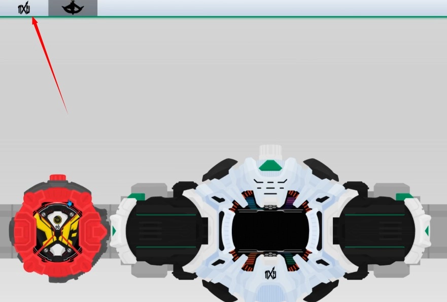 1、进入游戏模拟器后,正中间的白色时空驱动器以及上方左右两侧的驾驭表头便清晰可见,时空驱动器的左右两边均可插入表头,首先我们点击左上方的白色Zi-O驾驭表头。